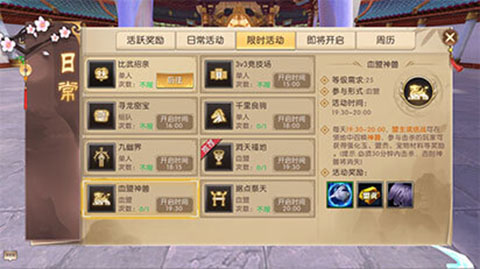 点击使用轩辕宝典(可一直使用查看),可以查看各类任务、活动的玩法介绍。大有“宝典在手,轩辕我有”的气势呦。一定要好好研究一下这个宝典。