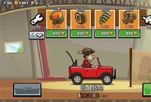 经过一段时间的游戏后,你的金币慢慢的可以满足你去升级自己的汽车时。首先升级你的轮胎或提高发动机其次是前悬架和四轮驱动,升级发动机到3级左右,然后慢慢的把其他几项也都提升到3级左右。这将更好的提升自己车辆的整体实力,不至于因为车辆的速度太快而经常翻车。