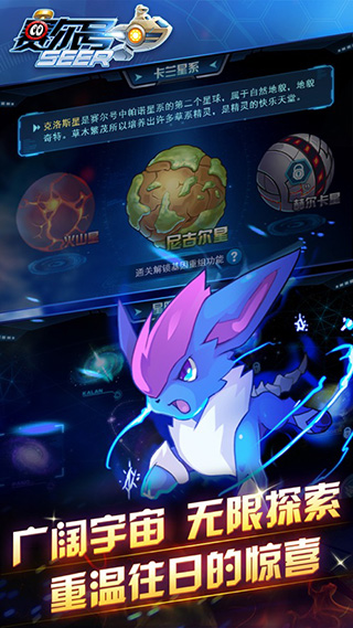 赛尔号手游苹果版是由淘米赛尔号页游原班团队制作发行的一款精灵养成类RPG手游,游戏画面精美绚丽,场景清新整洁,精灵角色以及UI设计的更加精致激萌,同时场景地图、剧情故事高度还原,给你儿时经典赛尔号回忆。赛尔号手游剧情围绕雷伊为保护赛尔号飞船受伤失去记忆展开,在这里玩家将展开探索宇宙之旅,去帮助雷伊寻找所丢失的记忆。游戏剧情精彩有趣,在这里玩家可体验多个星球场景以及丰富的特色关卡。