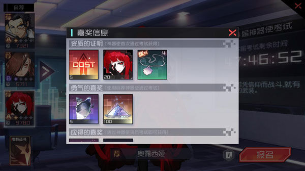 【勇气的嘉奖】(包含灵魂碎片*5、星尘*100):只有使用自荐的神器使完成考试才能获得。