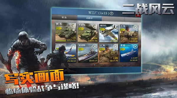二战风云ios版是以真实历史战争“二战”为题材的一款SLG策略手游,由顽石互动开发制作。该作品场景采用3D写实沙盘风格制作,其中,画面细节到位、生动细致,实景音效相配合给你震撼视听享受。战斗方面,二战风云采用了经典的即时策略模拟玩法,游戏内,玩家通过在一块大地图上实时排兵布阵,战斗内容以战报形式发布,在操作简单灵巧的同时,也非常考验玩家的策略,使得游戏更具可玩性。