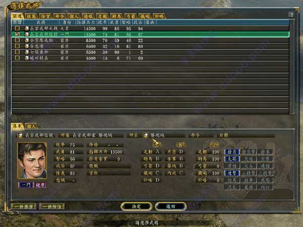 B战乱模式,在信长篇第8章(或是第9章?,记得不是太清楚,麻烦指正)完成后开启。分为大规模地图和地方地图。可以在织田,武田,上衫,伊达,北条,岛津,毛利,长宗我部八家中任意选择。某些地图需要完成剧本模式才能开启。