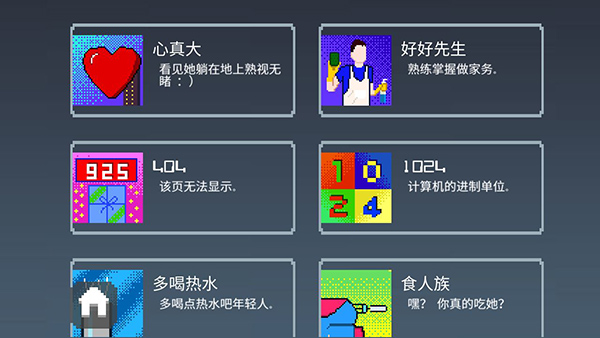 1、第1章cosplay中,如果无视躺在地上的女主直接走向阳台,会触发《心真大》成就