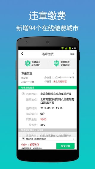 违章缴费、二手车买卖、汽车代驾保养、车主贷款,一键下单