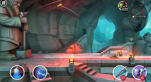 2、如图,我们可以通过滑动左边屏幕控制角色移动,右边包括攻击、奔跑和跳跃按钮,