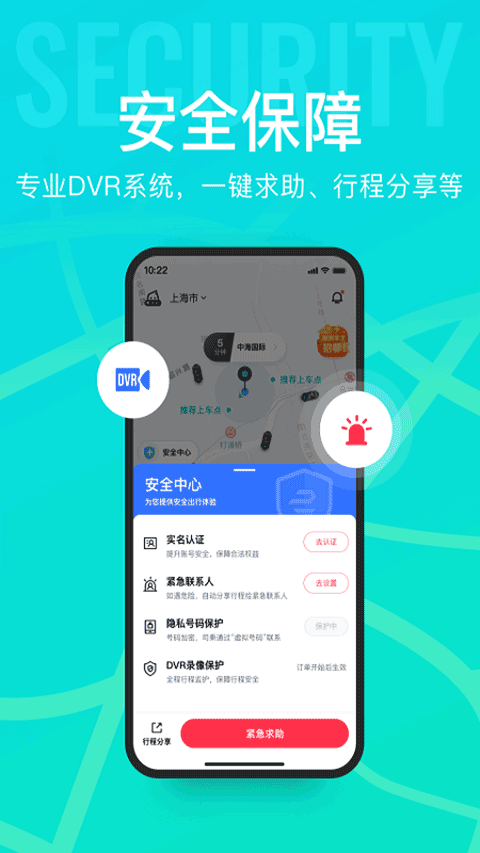 出车业合规率排名第,深度背调、人车统一,严选安全司机;优质车型定期保养,规范安全用车;支持一键紧急呼叫、行程分享等多重技术保障