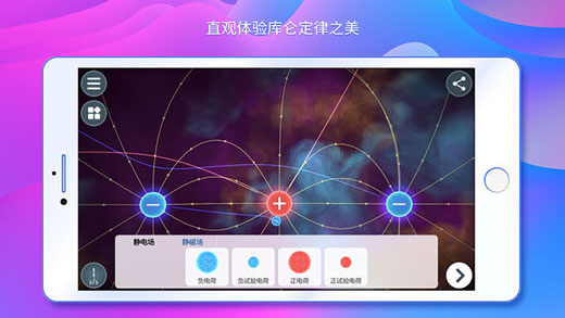 7、实时呈现电场线和静电场中的电荷运动情况。