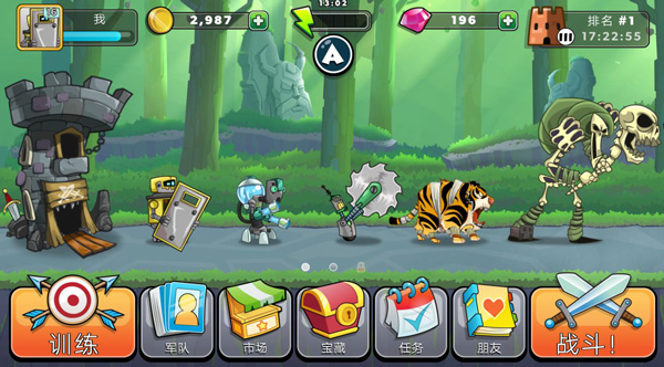 征服高塔手游中文版是一款趣味性十足的策略塔游戏,英文名叫做:Tower Conquest。也可以称之为:塔的征服。这款游戏的画面采用的是卡通式画风,给人感觉很舒服,游戏中的的作战单位也有很多,并且每个作战单位都有各自的特色,搭配起来的玩法会更有乐趣,难度设置的也很合理,钻石每天完成任务都可以免费领取,同时还融合有卡牌养车元素,玩家还能从中获取一张卡碎片,用于集合强力军团。