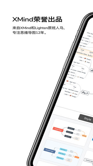 xmind思维导图苹果版是由深圳市爱思软件技术有限公司独立发布的一款应用于手机的商业思维导图软件,采用全球最先进的Eclipse RCP软件架构,及全新的绘图引擎Snowbrush,不管在主题、结构、样式或字体上,都能给用户带来与pc版一样极速和强大的思维导图体验。此外,软件包含16款思维导图结构,10个吸引眼球的主题,以及89个设计师原创贴纸,可遵循Material Design设计规范,运用图文并重的技巧,把各级主题的关系用相互隶属与相关的层级图表现出来,把主题关键词与图像、颜色等建立记忆链接,达到帮助用户节省时间并提升效率的目的。