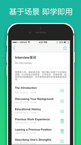 2、课程采用场景对话模式,学工作、生活中马上能用的口语;