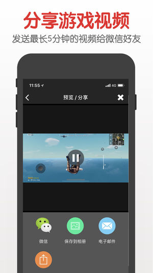 1、分享视频到微博,微信等主流的社交网络,支持一键分享,其中微信支持分享最多5分钟视频。