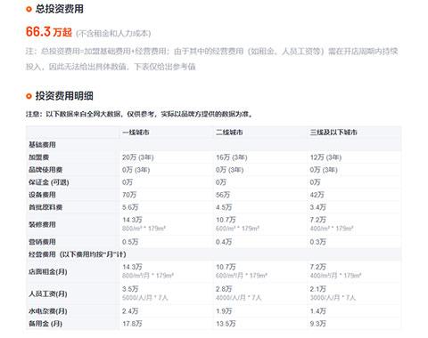 投资费用明细(注意:以下数据来自全网大数据,仅供参考,实际以品牌方提供的数据为准。)