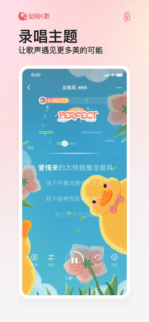 - 调音台:智能修音黑科技,唱好唱准更容易,逐句精修由你把控