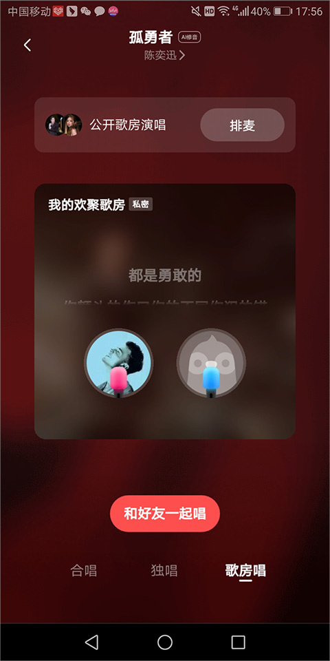 3、此时在新的页面中可以点击【和好友一起唱】来邀请好友来到自己的歌房唱歌