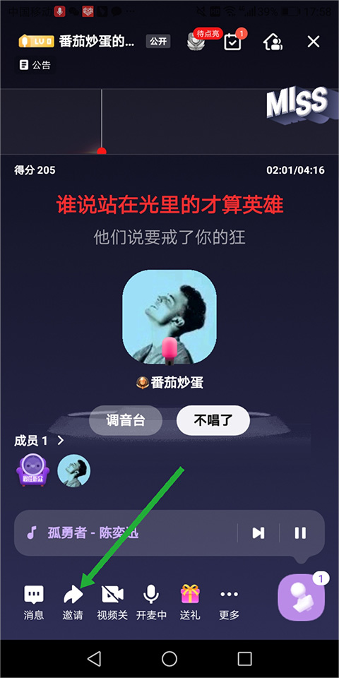 4、好友邀请方式就是在新打开的页面中点击底部左侧的【邀请】(下图绿色箭头所指区域)