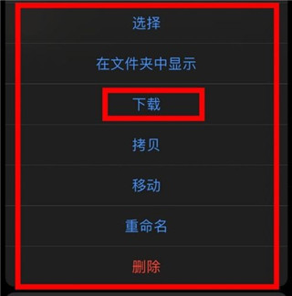 6、当然你也可以选择下载,一直按着要下载的文件,弹出选择框,选择“下载”即可,此时能在下载页面中找到下载的文件