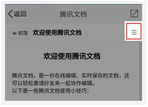 1)进入腾讯文档详情页--点击右上角「 三 」;