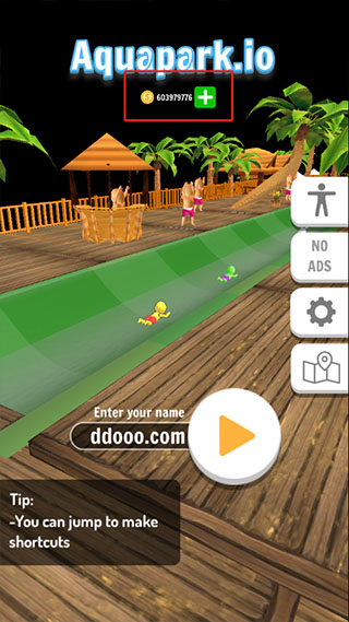 2、在Aquapark.io游戏中,玩家选择角色和其他玩家在水上滑梯上进行竞赛。