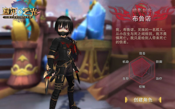 职业:暗影刺客;特色:近战/潜行;上手难度:★★★★★;暗影刺客藏匿于黑暗中擅长取人性命。他身手敏捷,攻守兼备,擅长突袭,是队伍里的强力输出担当。需要一定的走位和作战意识,适合中高级玩家。