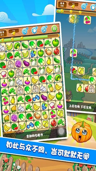 果蔬连连看3是一款操作简单的休闲消除游戏,主要以美味的 蔬菜水果为主题,比如桃、香蕉、橙子、菠萝、草莓等等。游戏画面和背景非常的清晰明亮,关卡设置新颖有趣。目前游戏有多种闯关模式,包括经典模式、争分夺秒、无限模式、梦魇模式、消消乐模式,玩家可以选择自己喜爱的模式玩。游戏玩法也非常简单,就是在有限的时间内消除所有的水果和蔬菜,但是游戏越到后面也需要一定的耐心和眼里,感兴趣的话就来下载体验吧。