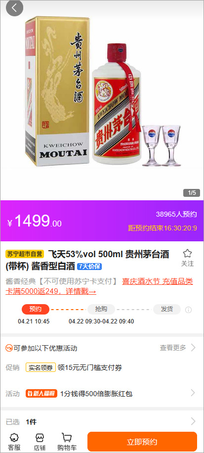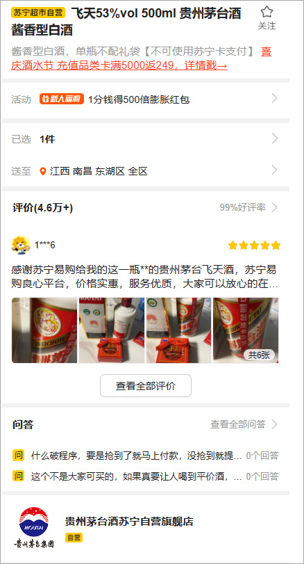 苏宁易购app同样也是茅台酒预定的官方渠道之一,用户可以在苏宁易购app中通过实名认证后,便可以参与茅台抢购活动,而且这些抢购活动天天都有,其价格可以通过苏宁易购平台所提供的会员优惠政策,比茅台官方的优惠价格将更加优惠。最重要的是抢购的茅台酒都是茅台官方正品发货物,其正品货源可以进行溯源,可在网上进行查询真伪,有需要的用户可以在本站下载使用。