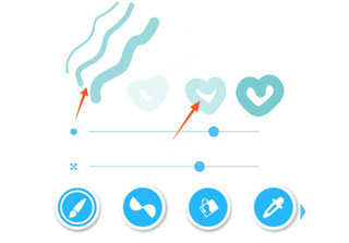 1、通过滑动控制线条粗细,向左滑动变细,向右滑动变粗;