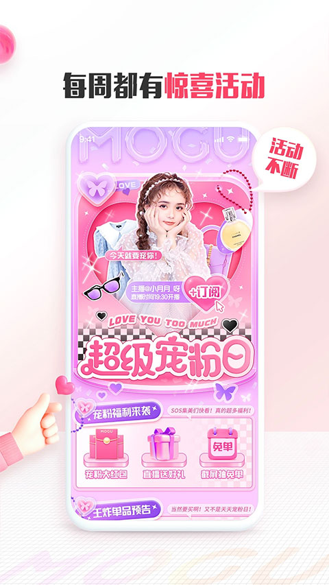 蘑菇LIVE直播好玩儿到停不下来,网聚美女网红与超嫩小鲜肉,还能边看直播边逛街,与中国移动买手衣柜零距离接触。