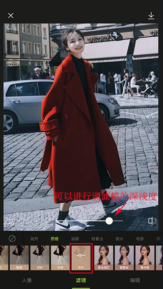 注:当前小编选择的是超显白的"丹宁"滤镜