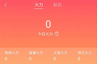 2、然后用户就可以看到自己的火力值了,这里的火力值分为视频火力,直播火力,火苗火力和其他火力。用户可以通过直播、发视频、获得其他粉丝赠送等方式获得火力。