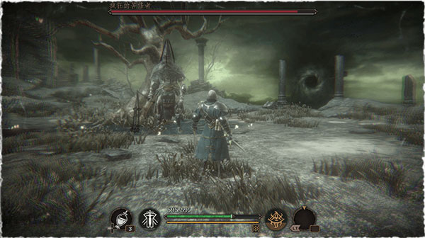 地点:沿着主线路线走到圣剑修女处,直走左拐下楼梯,到达第二个圣柱后,沿着主路往前走,遇到岔路往右跳下裂缝或直行均可到达。