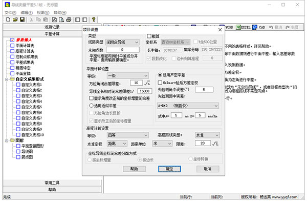 闭、附合导线的平面及高程平差。平面计算可以选用近似或严密平差。