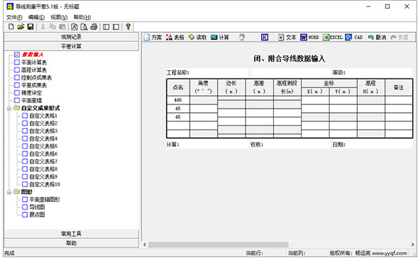 导线测量平差软件官方版是一款适用于各种导线,导线网的观测记录及平差计算的实用工用,内置了多种计算方案,帮助用户在观察记录,概算,平方差计算等方面可以准确而快速地计算,为用户的节省了工作时间,提高了工作效率。