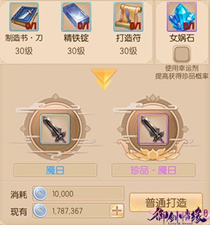 铁匠:可制作打造符,用于打造相应等级的兵器。