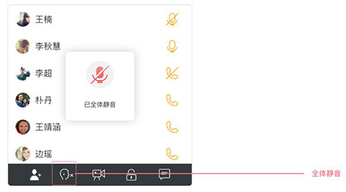 会议人数过多、会中声音嘈杂,影响会议效果?主持人可点击「全体静音」,所有参会人将不会再听到杂音了,保证会议效果。