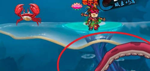 4、进入方法:玩家在挑战关卡的过程中,打到第二波小兵的位置,在右下角有个大章鱼触须。只要打一下章鱼触须且位于触须的范围内,就会被强制拉进隐藏副本深海当中,也可以选择自行走进去。此外这个章鱼触须是可以打掉的(虽然好像没什么用)。