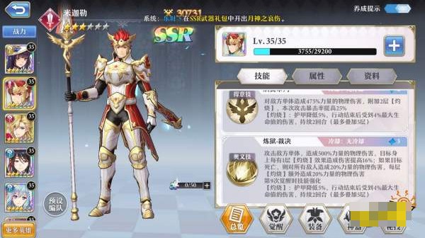 米迦勒最好能带ssr的弑神之刃,单体攻击能触发额外90%攻击伤害。往往能打出意想不到的伤害。神器镶嵌方面,输出优先考虑狮子座,坦克优先考虑白羊座。