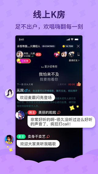 2、在线ktv,与朋友打歌。随时随地在线播放K歌-在线K歌互动。