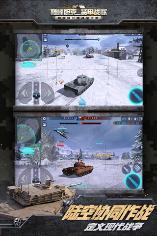 同时巅峰坦克玩法非常简单,玩家既可以直接驾驶飞行战斗机,也可以驾驶陆战之王Tank,带着辅助载具装甲车在敌军阵营中横冲直撞,所有的载具都可以装备多种战斗武器,而且你还可以根据自己的需求来进行改装,合理的改装将会让你的战斗装备变得更加强大。另外,巅峰坦克游戏中有超过百款的现代坦克、装甲车、武装直升机、反坦克歼击炮等武器载具可供玩家自由选择,还有冰雪绝地、风车小镇、荒漠戈壁等特色地图,为您展现多维现代战争的视觉盛宴。