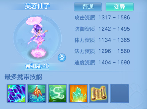 由于变异后的芙蓉攻击资质比法力资质还要高,所以觉得多数人都是拿来做攻宠,而且特殊技能比较鸡肋,基本都是打掉不用的。而且体力和防御资质比较一般,但是速度资质不错,目前主流的勄功打法,隐身一般较少因为隐身+高连伤害就少了40%,剑气就不介绍了。