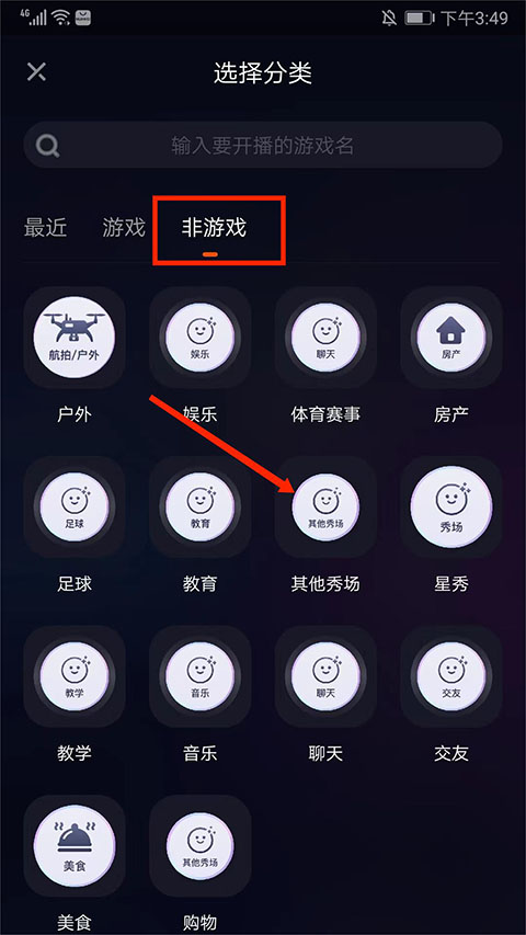 2、进入到选择分类,选择“非游戏”栏目,选择“其他秀场”的图标,