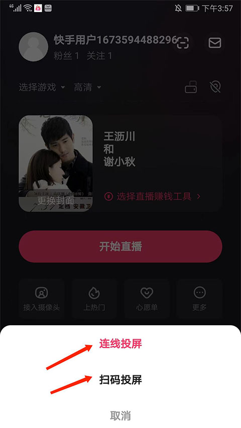 5、可自行选择“连线投屏”或者“扫码投屏”即可播放电影电视剧了。