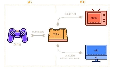 2、采集卡、游戏机、电脑、显示器的连线示意图如下: