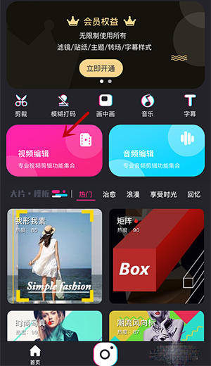 AI视频剪辑软件是一款智能化的视频编辑工具,这款软件利用人工智能技术为用户提供了快速、高效的视频剪辑体验,支持volg视频编辑,视频剪辑、视频制作、视频美化工具,专注于小影片、短视频剪辑修剪分割变速倒放,功能简单易使用,软件不仅提供了丰富的特效和滤镜效果,让用户能够为视频添加各种视觉效果,例如,用户可以添加转场效果、动画效果、色彩调整等,使视频更加生动、有趣。同时还具备智能化的素材库功能,用户可以从中获取各种特效、滤镜、背景音乐等素材,为视频作品增添更多创意元素,功能非常丰富,有需要的小伙伴千万不要错过哦!