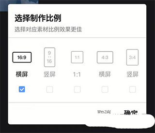 2、选择一个素材之后系统会让你选择制作的比例,这个按照自己的需求去选择就好了;