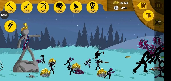 将传统的即时战略(RTS)游戏的资源管理、造兵升级等要素,与简洁而有趣的火柴人画风完美融合。