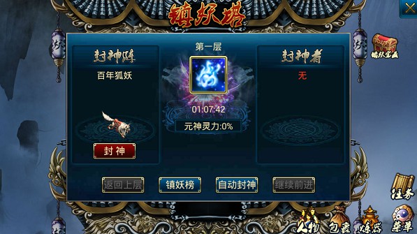 玩家到达40级时就可以开启锁妖塔啦,锁妖塔系统的推出是在于给玩家一个能够挑战极限的战场,全新的炫耀的舞台,并掉落装备注灵所使用的材料。每层锁妖塔都有一个聚魂阵,每隔一定时间收集塔内灵气孕育出各种道具。玩家可以分出一个元神去守护聚魂阵,并获得阵内的宝物。其他玩家来到这层的时可以挑战守护的玩家元神,若成功将其击败可抢夺聚魂阵的守护权。聚魂阵每隔一段时间都会产生1份奖励,每日的7点结算奖励给镇妖者,若在镇守期间聚魂阵被抢夺,则镇妖者获得一半累计的奖励,若聚魂时间大于一小时则抢夺者获得1份奖励。、每层锁妖塔都在镇妖宝藏里有对应的奖励,玩家可以领取一次奖励,这些奖励十分丰富哦。