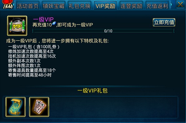 最后就来介绍一下VIP系统,特权部分对于玩家有很大的帮助,可以增加副本、阵法和修炼加速次数等,越到后面,福利越丰富,玩家可以根据自己的能力选择。