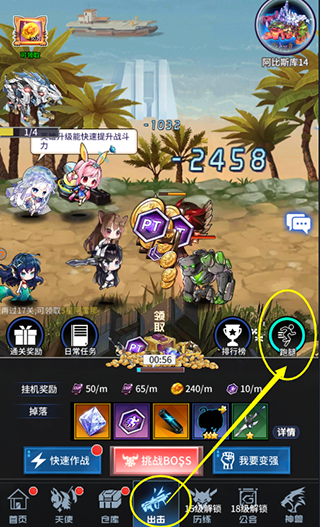4、玩家可以通过对英雄升级进化、进阶提升,来增加英雄战力,快速解决战斗。
