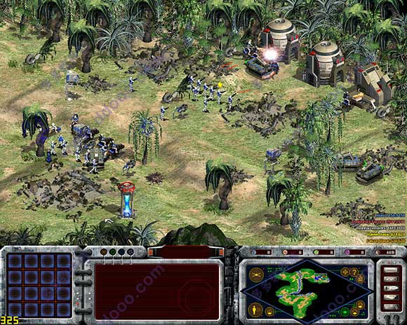 流程:此关完全没有科技等级限制,指挥中心可升到第四级,其它设施里的科技也全部开放,诸位不妨利用这关好好熟悉一下兵种、建筑、科研,各派间虽然兵种不同,不过设施、科研方面基本上是一致的。也正是基于此,可供选择的破敌方法并不止一种,步兵、机械化部队、空军或它们的混编组合均可达到目标,看诸位如何去选了。它更象一个easy难度的skirmish战斗,给玩家某种实战的感觉。敌人会对你展开轻微的骚扰性进攻,因此一开始除了出工人并分配他们采集各类资源外,还将围墙缺口附近的工人就地造城门和防御塔。敌人将先打击外围的哨塔,给玩家的发展腾出了时间。指挥中心升到第3级后工人即可建防空塔(anti-air turret),在城墙后面和指挥中心旁边均建一些。各类军事设施也不妨都摆上,从部队中心、机械工厂、重武器工厂(hvy weapons factory)、要塞(fortress)到机场。笔者的混编方式是以步兵、pummel当前,医疗兵和随行的工人负责给它们加血,吊炮、炮兵跟在后面轰击敌设施,引诱敌兵出来;同时带上一些防空兵,随行的工人一路建兵营甚至要塞、防空塔,逐渐往北推进,完成目标只是时间问题。建议将那些英雄驻扎进基地里的要塞里,避免不必要的风险。另外,按F10键可快速调出存盘、取盘选项屏幕。
