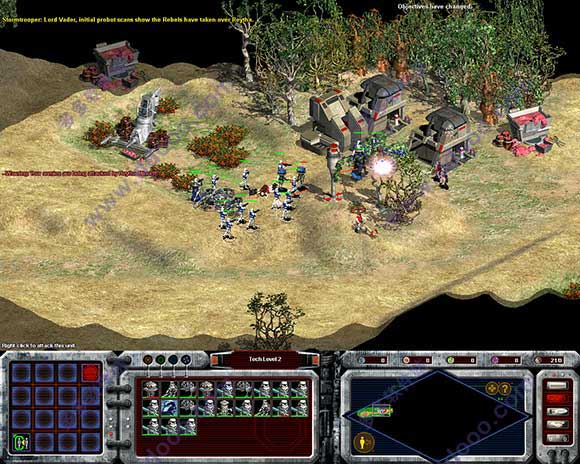 任务:我们已发现贸易联盟在Alaris Prime星球上活动的主基地。训练出一支强大的部队,摧毁北面山顶上的的要塞,同时确保所有英雄都活下来,包括Qu-Gon Jinn。